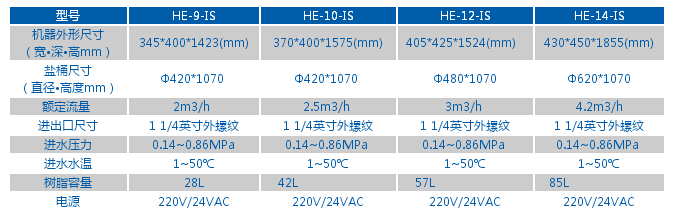 HE-9-IS 型中央软水机主要技术参数