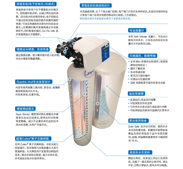 注:该系列软水机标配为流量再生型,可以选配硬度测试探头。 2. 此流量为标称流量,并非最大流量。