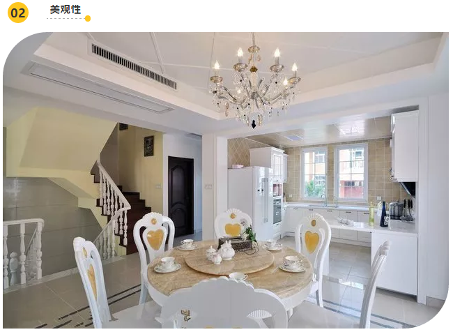 家用中央空调采用隐蔽式安装,室内机和冷媒管道、冷凝水管道都暗藏于局部吊顶空间,最大限度释放室内空间,是中央空调和室内装修风格融为一体,美观大方。家用分体机都需要占用墙壁装饰空间或者地面空间,室内机和室外机冷媒管道外露,空调和房间的整体装饰风格很难协调。