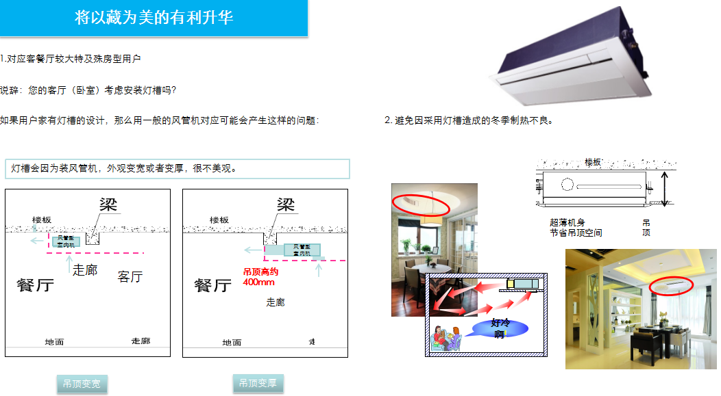 专业的销售人员通过技术说明和安装实例分析,帮助用户更确切地了解家用中央空调的知识,解除疑虑。并且,为装潢公司提供家用中央空调的各项咨询服务。同时,公司实行统一规范的报价、PROSHOP专用的合同范本、让您购时放心,售后无忧。