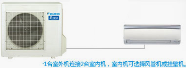 24-44?客餐厅,六种套餐固定组合。 一台室外机链接两台室内机 室内机可选择风管式室内机或挂壁式室内机 灵活对应各种客厅、餐厅的空调需求